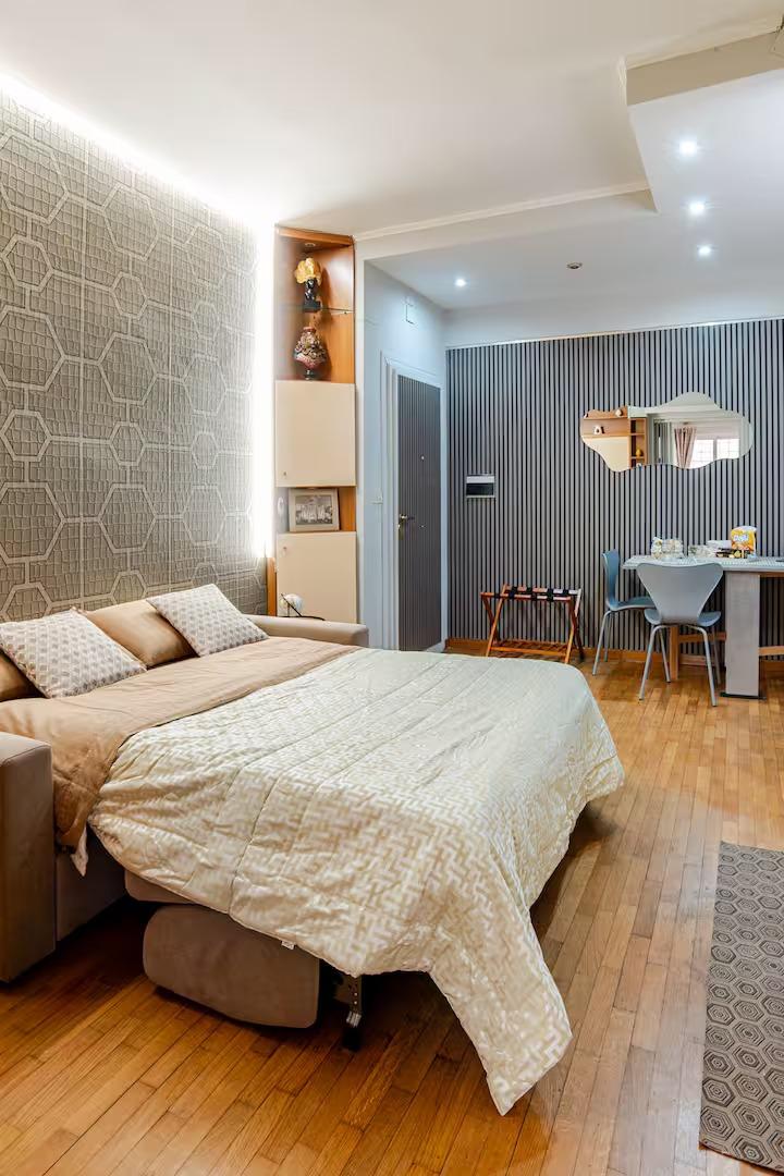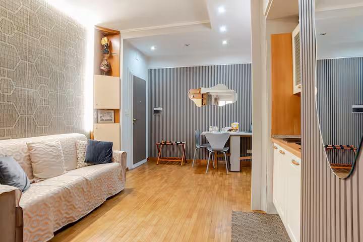 Scopri un angolo di tranquillità, a pochi passi dal Vaticano e dalla Stazione ferroviaria San Pietro. Il “Vatican Heart Leone” è il rifugio ideale per chi cerca pace e relax, senza rinunciare alla comodità di una posizione centrale e vicina a tutte le più belle attrazioni romane. Dopo una giornata trascorsa a esplorare Roma e le sue meraviglie, potrai rilassarti nel nostro accogliente terrazzo privato, perfetto per un momento di relax all'aperto e per godere di una fresca sera d'estate. Il nostro appartamento si trova al primo piano di un elegante palazzo in via del Lago Terrione n. 83, ideale per famiglie o gruppi fino a 5/6 persone. Con i suoi 45 metri quadrati, l’alloggio è composto da un ingresso con accogliente locale, un angolo cottura attrezzato con piano ad induzione, angolo colazione con macchina da caffè, microonde e bollitore, un comodo divano letto matrimoniale e due letti a castello, con prima fornitura di biancheria da letto e da bagno. Il bagno, completo di box doccia, è dotato di wc, bidet ed asciugacapelli. Adiacente al primo locale, troverai una seconda stanza, separata da una porta per garantire la tua privacy. Questa stanza è equipaggiata con un letto matrimoniale, TV led con Netflix ed offre accesso diretto al terrazzo di 55 metri quadrati, riservato esclusivamente ai nostri ospiti. Sono disponibili parcheggi a pagamento e parcheggi pubblici gratuiti nelle vicinanze. Con la sua combinazione di tranquillità e posizione eccellente, “Vatican Heart Leone” è la scelta perfetta per la tua vacanza indimenticabile a Roma.